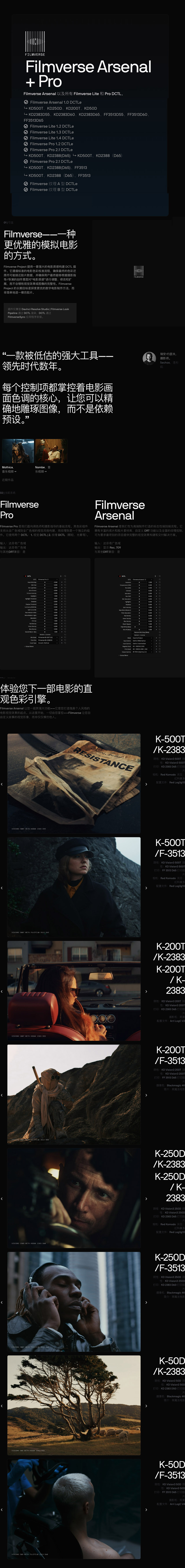 Filmverse——一种更优雅的模拟电影的方式。提供一套强大的电影质感构建 DCTL 插件。它遵循标准的电影色彩校准流程,确保最终的色彩还原尽可能接近胶片数据,并确保用户最终能够根据摄影指导/导演的创作意图对“电影质感”进行调整、修改和扩展,而不会牺牲视觉效果或图像的完整性。Filmverse Project 的长期目标是探索更优的数字电影制作方法,而非简单地逐一模仿胶片。