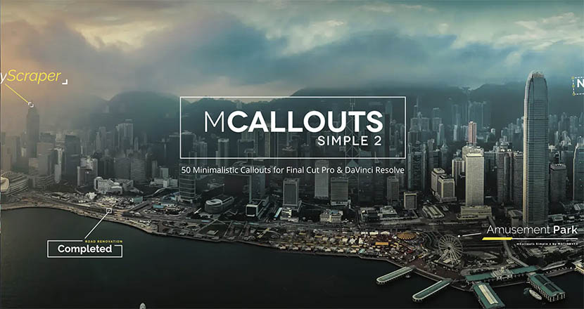 该插件提供了50种自动跟踪呼出指示线条文字标题介绍注释展示动画,mCallouts Simple 2是崭新的令人惊叹的优雅外观,用于编辑视频细节。这些通用可跟踪设计的用途没有限制,因此您可以将它们适应几乎所有编辑。简约,简单,但在各方面都非常时尚-此套件将使您的编辑工作变得更加轻松!