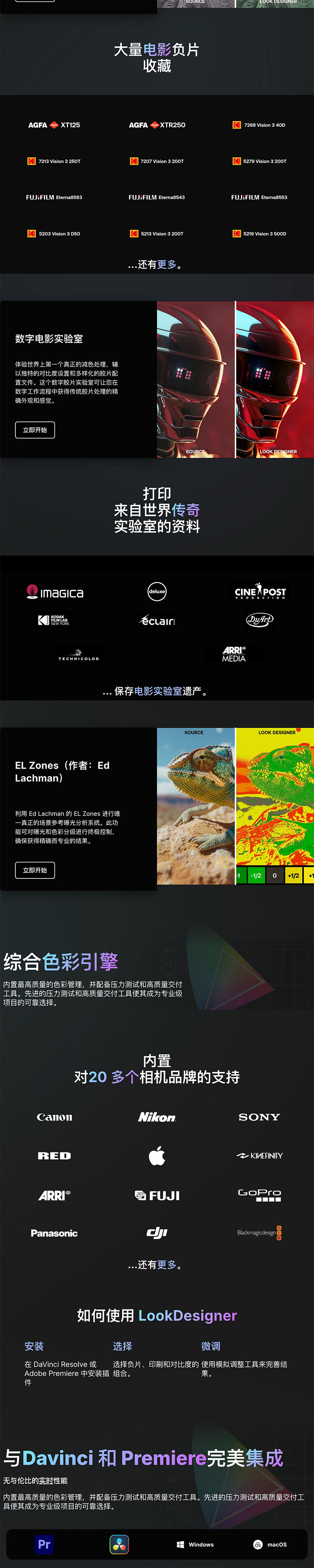 该插件包含了专业模拟电影胶片调色工具,Look Designer 准确模拟与胶片采集、显影、扫描和打印相关的过程。它超越了具有自定义减色 CMY 处理的简单胶片仿真 LUT。